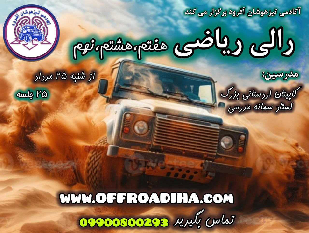 آکادمی تیزهوشان آفرود با حضور کاپیتان اردستانی بزرگ اقدام به برگزاری دوره آموزشی “رالی ریاضی آفرود” ویزه دانشآموزان سال هفتم،هشتم و نهم نموده است